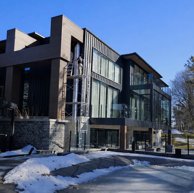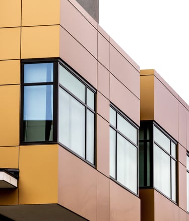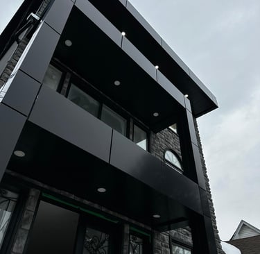 Modern exterior cladding solutions including ACM panels, siding, and durable façade systems.